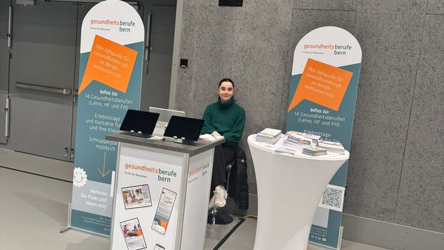 Gestern Donnerstag, 20. November 2025 war die Dachmarke Gesundheitsberufe Bern erstmals präsent am Berner Bildungstag. Diese zentrale kantonale Fachkonferenz für Lehrpersonen und Schulleitungen im Kanton Bern wird organisiert durch den Verband Bildung Bern. Mit einem Informationsstand rückten wir die Gesundheitsberufe stärker ins Bewusstsein der Teilnehmenden.